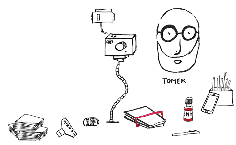 Pan Tomek tworzy koncepcję wizualną i zdjęcia do projektów realizowanych przez uprane.com.